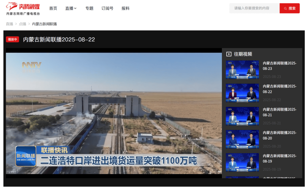 ●8月21日,内蒙古卫视《正午时光》发布视频《创历史同期新高 二连浩特口岸进出境货运量突破1100万吨》。(二连海关供稿)